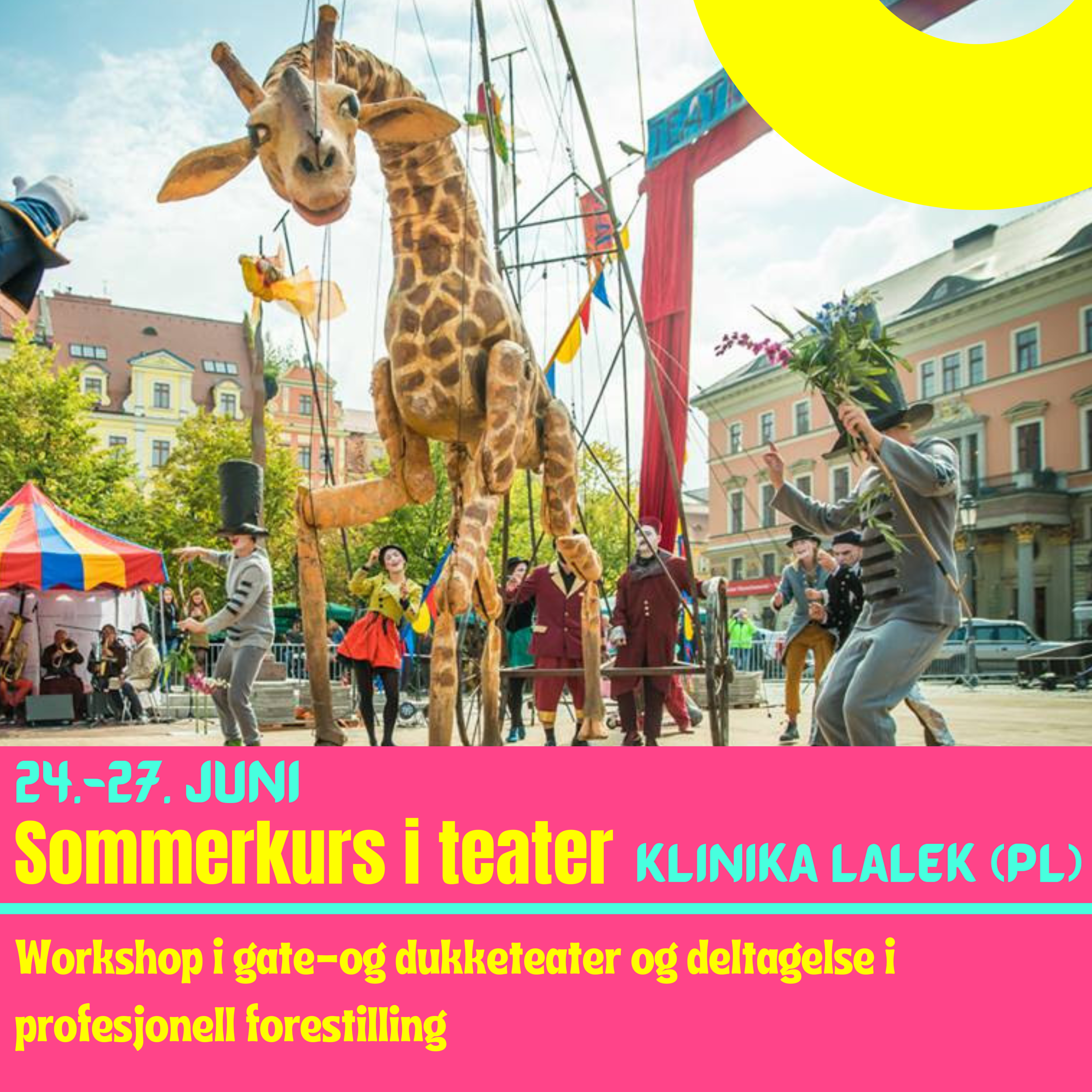 Gateteater med gigantiske dukker opptil 7 meter høye. En unik mulighet for barn og unge til å bli med i en profesjonell forestilling sammen med internasjonale kunstnere. I en kreativ sommerskole jobber deltagerne med samarbeid, bevegelse, scenisk tilstedeværelse og med håndverk der de skaper sine egne figurer.